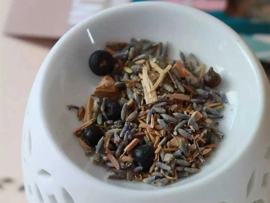 Le genévrier ou cade est un arbre sacré de la tradition druidique, synonyme de chance. Il est associé au lavandin, symbole de partage, au bois de santal et à la résine de benjoin, favorisant la concentration.
